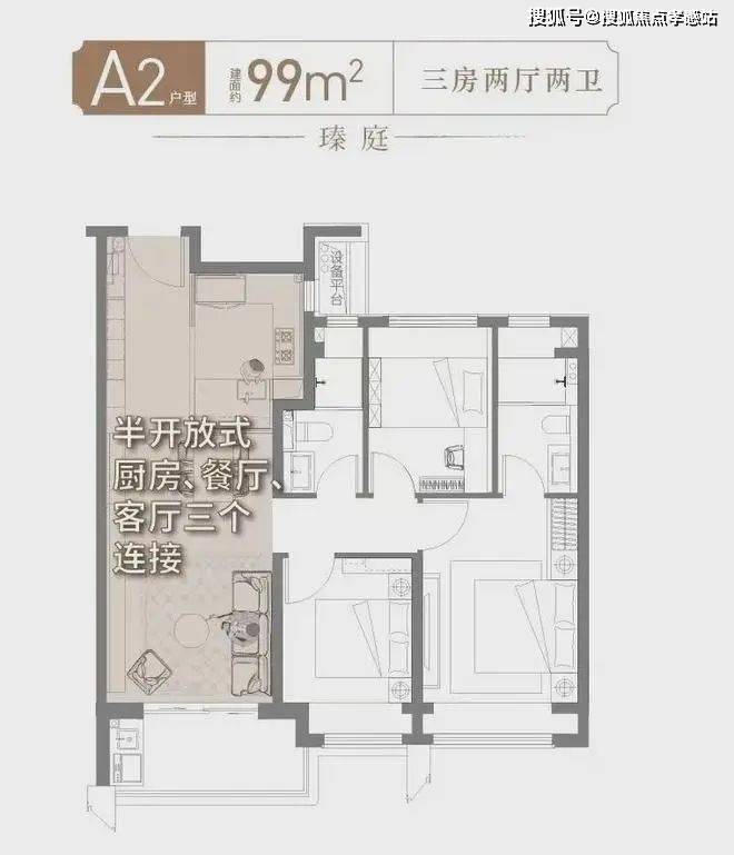 细节一:99㎡户型开放设计,核心区利用率MAX!