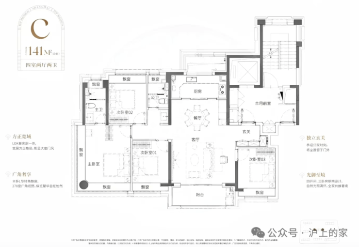 比起市面上普遍的三开间朝南动静分区户型,该户型至少有3大爆点: