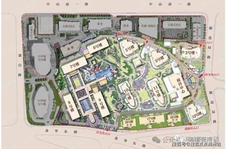 占地12.3万方,建筑面积72.5万方,小区容积率2.58,绿化率40%;