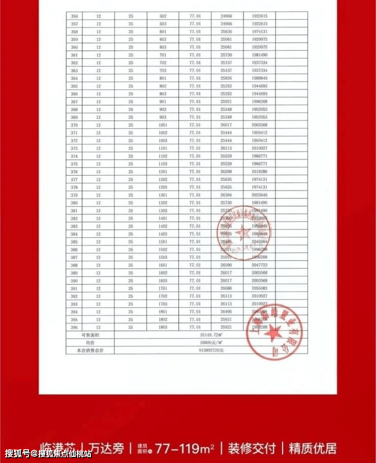 项目一房一价表