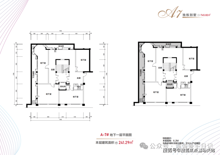 布局:地上三层(4.5米层高)+地下一层(6.2米层高)+900㎡花园