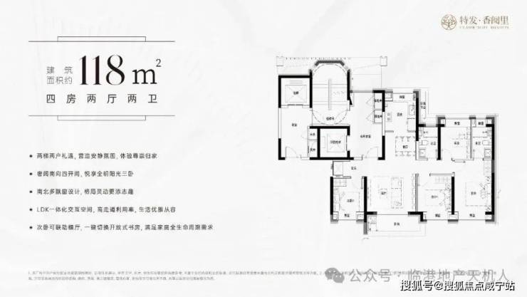 118㎡南向四开间 则似阳光的礼赞,四房逐光而立,罕见无连廊设计将私密与通透熔铸一炉,六重飘窗托起生活的诗意,让三代同堂的欢声在通透格局中自由生长;