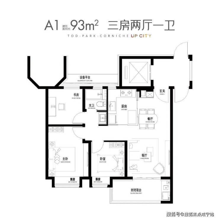 部分93㎡户型次卧面宽仅2.7米,建议102㎡以上户型改善舒适度;