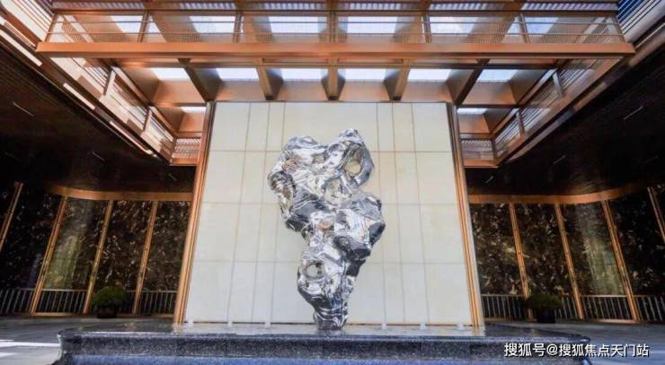 外滩源著复兴里以 现代海派风格打造尊享仪式入口空间,门庭规制尽显典雅,为归家动线赋予满满礼仪感。大门中央“寻石问礼”主题造型雕塑,选用摩登海派高定材质,将传统意蕴与当代东方美学相融。