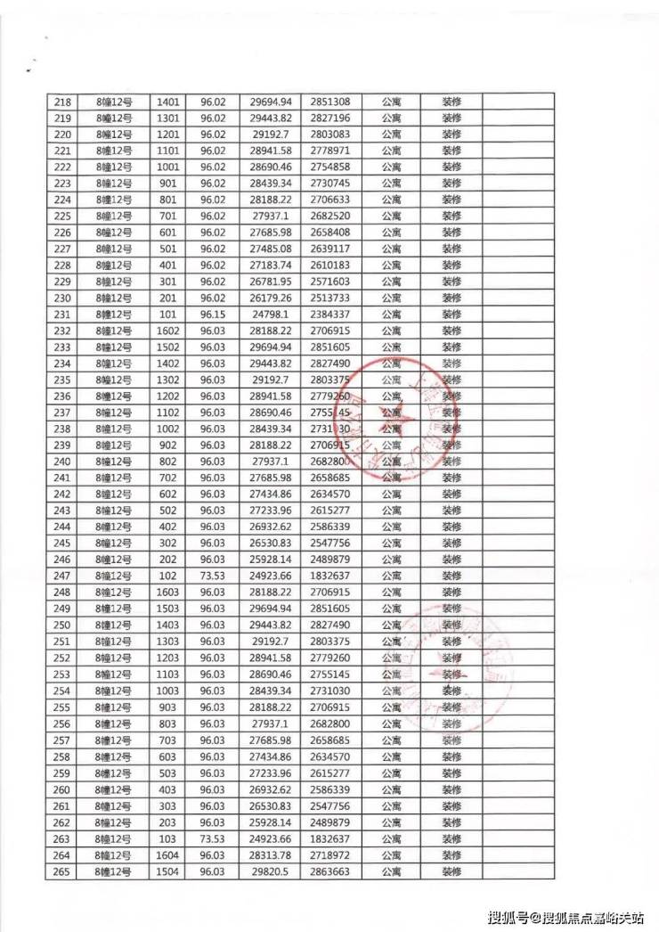 一房一价表