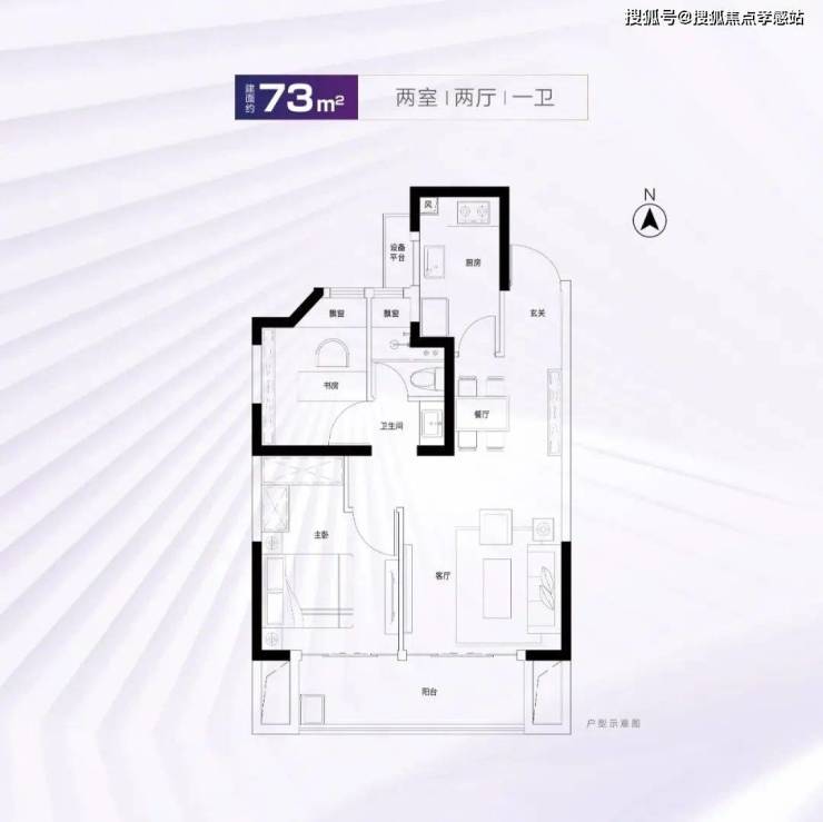 建面约73m²2房2厅1卫