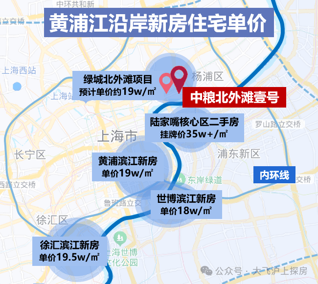在上海一线滨江板块地图中,陆家嘴,黄浦滨江、徐汇滨江等地新房单价都已突破19万/㎡。今年6批次,北外滩地块也紧随其上,溢价率46.3%,预计售价约19万/㎡左右,成为今年最炙手可热的滨江板块之一。