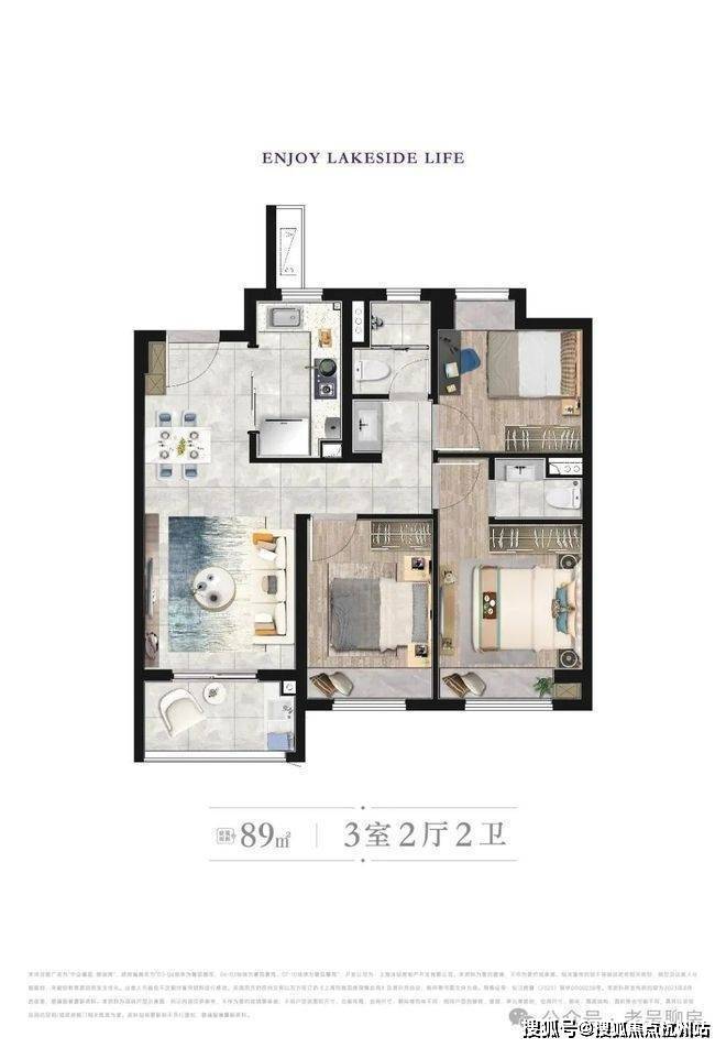 建筑面积约89㎡三房,总价448万起