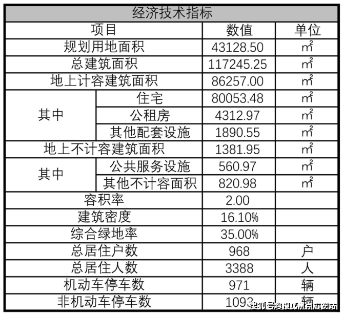 规划共设968户,商品房890户,保障房72户;机动车停车位979个。