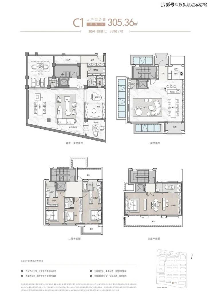主力面约262~306㎡联排别墅第上三层+地下2层+大花园总价约1398万起目前“样板间”已开放