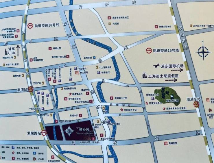 教育方面:幼儿园、中学 均在一公里范围内!对口上海市师范幼儿园东南幼儿园(步行约630米)、九年制尚德实验学校(私立)、中福会幼儿园、上海英国学校、上海长宁国际学校、周浦镇第三小学(步行约1.4KM)、周浦中学(步行约420米)、澧溪小学/中学(步行约1.7KM)、周浦实验学校(步行约2.1KM)、吴迅中学(步行约2.6KM)构成国际教育资源矩阵。
