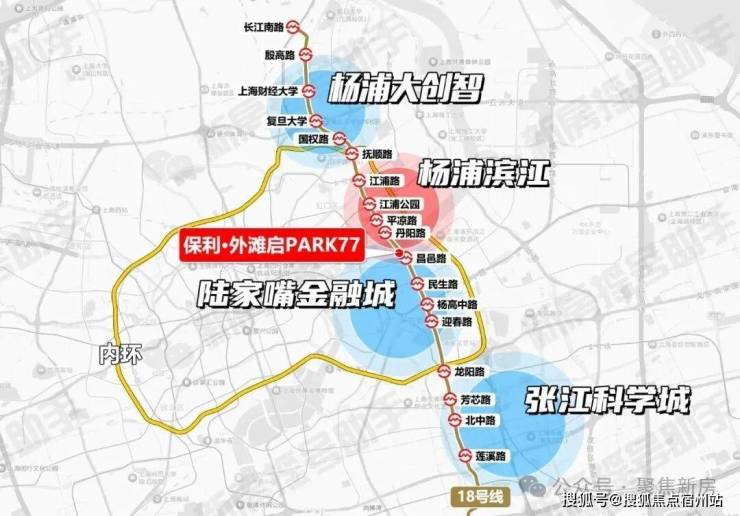纵向18号线:贯通复旦/同济/财大杨浦大创智国际生态联盟、长阳创谷(小红书、得物总部)、杨浦滨江科创带(美团、B站千亿集群),6站陆家嘴缔造“智识-产业-资本”全链生态。