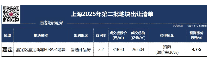 2025年刚结束的2批次土拍,位于嘉定新城板块的【嘉定新城FO3A-4地块】触发首轮终止、溢价30%成交,未来单价或可达6万/㎡!