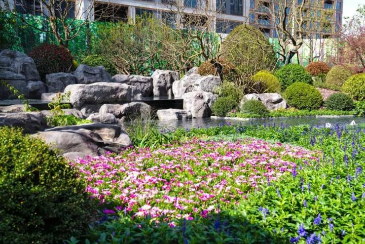 穿过大堂,便是此前项目已开放的两大园林景观示范区——溪山叠翠与云麓园。