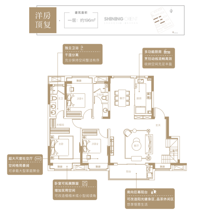 洋房顶复:建面约196㎡
