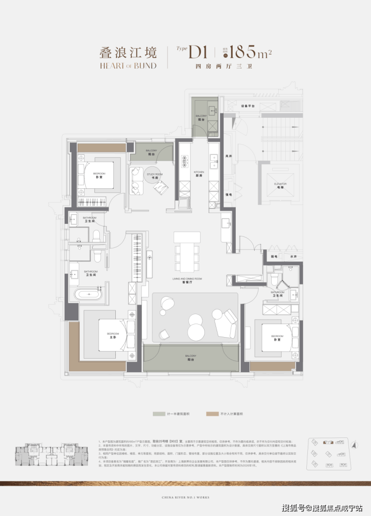 当然,作为一线滨江首个新规后作品,项目建面约185㎡户型的设计也是亮点满满。