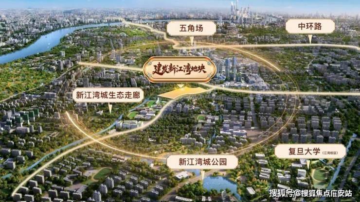 全新地块位于新江湾正芯,西临江湾城路,南接殷高东路,北贴在建的交大附中杨浦实验学校(在建);