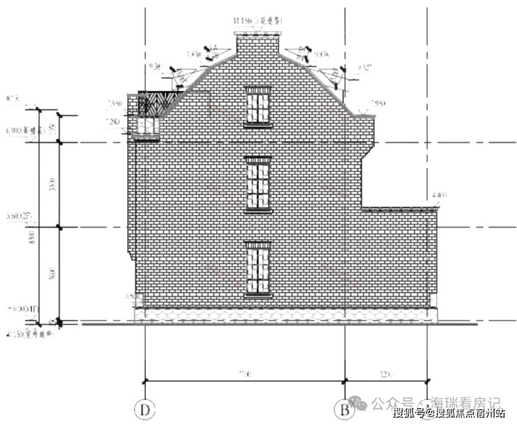 6号楼比较特别,是相对比较独立的类独栋了,标准地上3层,看看它的立剖面图: