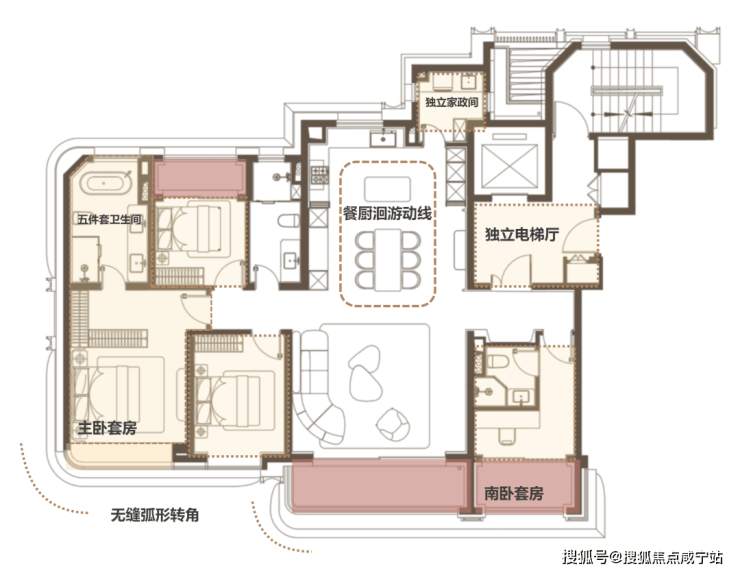 首先来看主力约190㎡户型,分布在两栋单元的西边套。