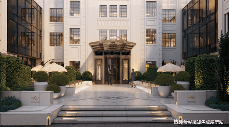 而在主入口之后,正是公区环绕的下沉会所,以及一侧的景观廊道,由历史而入门,当代审美在高低错落间,打造了模版级城央体验。