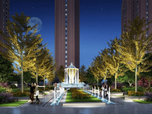 高绿景观园林 :约 1 万㎡中央花园、多重绿植、英式花坛、叠水景观、休闲步道,四季有景,饭后散步、遛弯、遛狗,惬意又舒适。