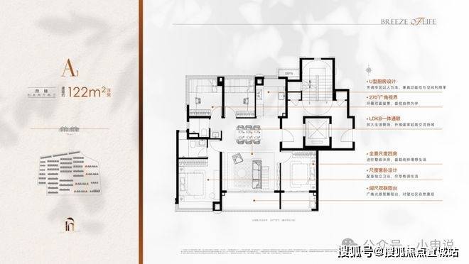 总价约514万起即可上车的王炸级洋房户型,三批次同步将热势加推!建面约122㎡4房2厅2卫墅境洋房,3+1飞机户型,客厅开间约8m,LDKB一体化设计,以餐厅为中轴的生活交流动线,平衡生活的意趣与从容的格调;双联阳台的突破创新式设计,让整体阳台面宽突破到约8.2m;