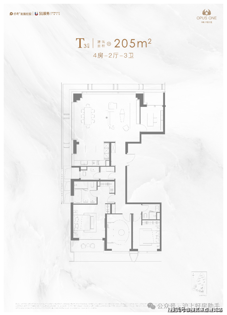 ⑥ 174m²客厅8.2米/奢侈三房/主卧开间5.7米/最小卧室约14m²