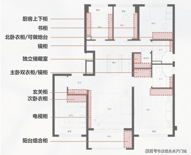 收纳是改善户型的基本功。这个建面约138㎡的四房,把 独立储藏室也挤了出来。