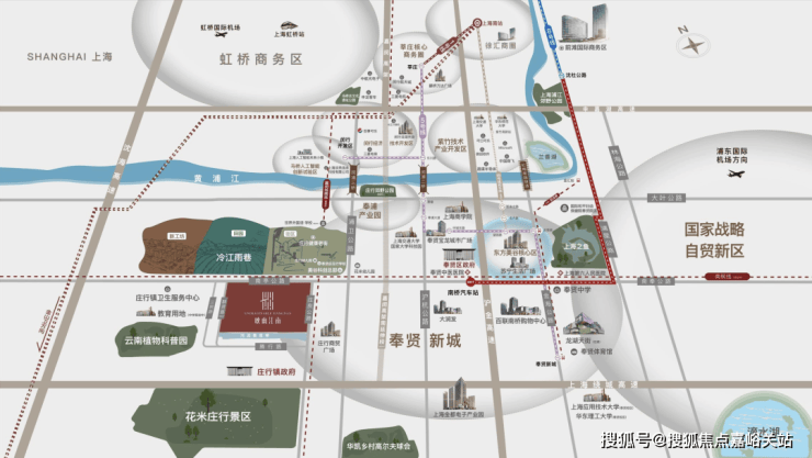 交通方面,虹梅路隧道速通闵行国际商务核心区、紫竹高新技术产业园区。闵浦二桥直通颛桥科创产业聚集区, 闵浦三桥直抵马桥人工智能创新试验区,南枫线对接临港浦江国际科技城, 嘉闵高架接轨虹桥国际枢纽。
