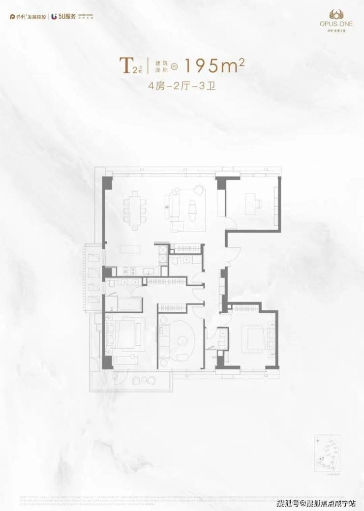 建面约195㎡北向面宽达到约12.5米,堪称IMAX观景面,和黄浦某顶豪275户型面宽数据相近。