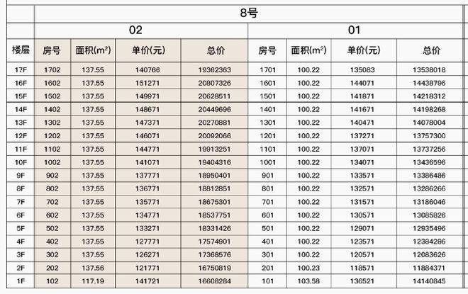 最新一房一价表: