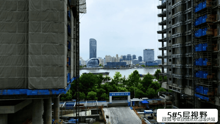 5#楼按照现场视野模拟,由于南侧1#楼的遮挡,若要纵览比较全的江景,需要20层及以上。