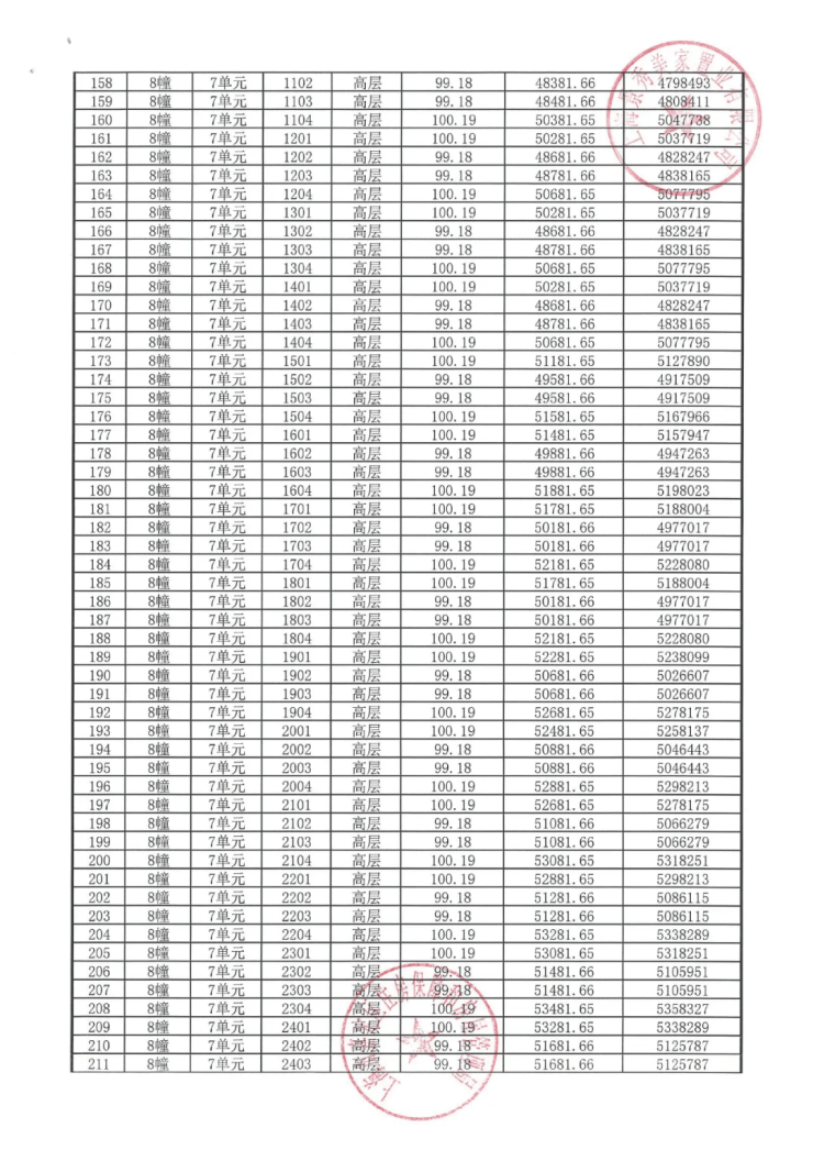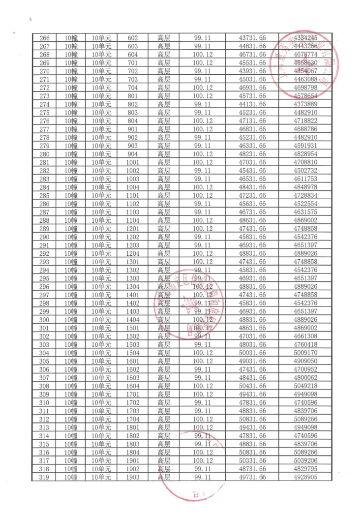 完整一房一价表如下: