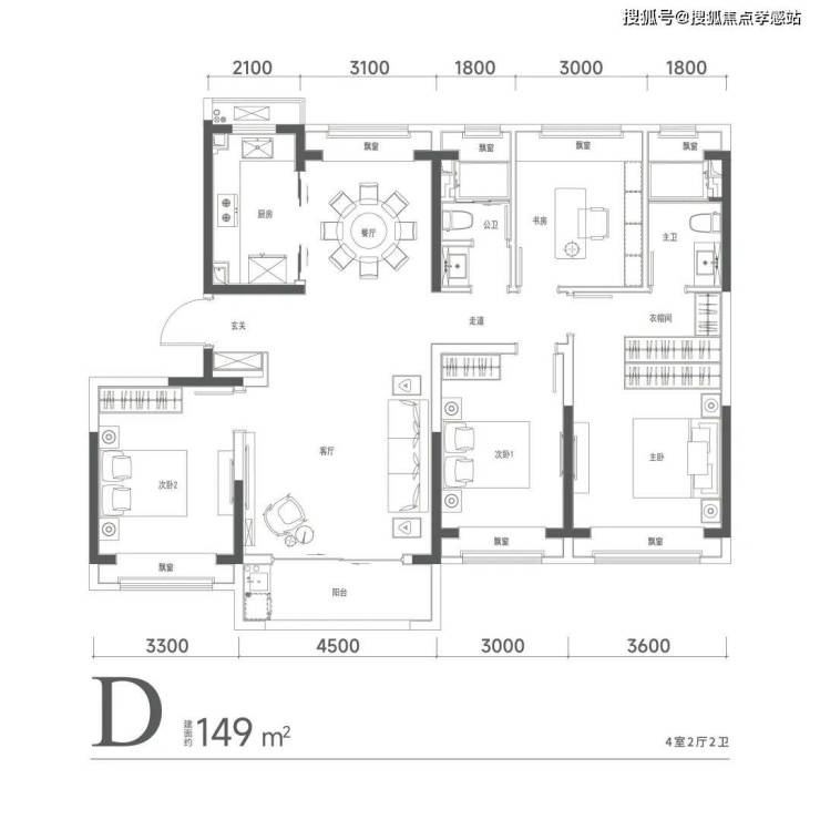 6个飘窗设置(不算面积)更很好延展了室内空间。