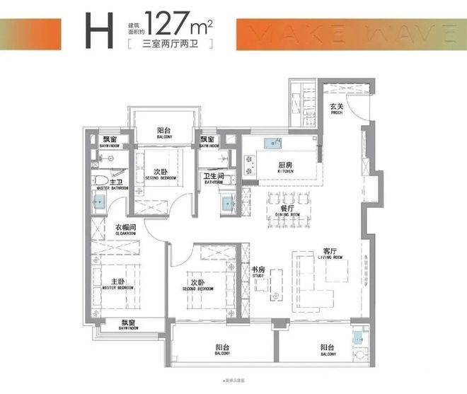 建面约127㎡的改善户型将私密与舒适的完美融合,畅享无限拓展生活空间。