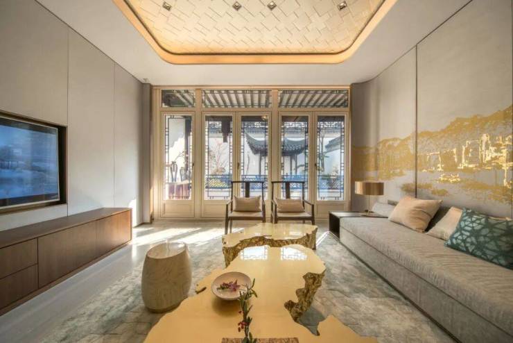 从外部来讲,上海桃花源拥享滨江壮阔之景,悦享“护城河”宁静之韵。从内部而言,上海桃花源金瑞园大幅优化水街格局,延承苏州平江古城水巷交错的江南风格,形成“双龙戏水”十字交汇格局。水街从中轴景观辐射,沿东西、南北两个方向发散,通过增加水景长度,延伸水景曲折性与丰富感,让水景更具东方园林之韵。同时,上海桃花源还打造水景两头的端景园林。水景大幅增加后,家家有水景,别有一番意境。