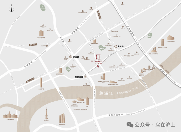 同时,直线2公里内还有新建路隧道、大连路隧道、江浦路隧道以及杨浦大桥直达浦东。从项目到陆家嘴、北外滩和外滩都在15分钟以内(百度地图测量)。