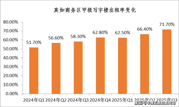 真如商务区甲级写字楼出租率也一路攀升——从2024年一季度的51.7%,提升至2025年三季度的71.7%。这个成绩,对于一个新兴商务区来说,几乎可以打满分。