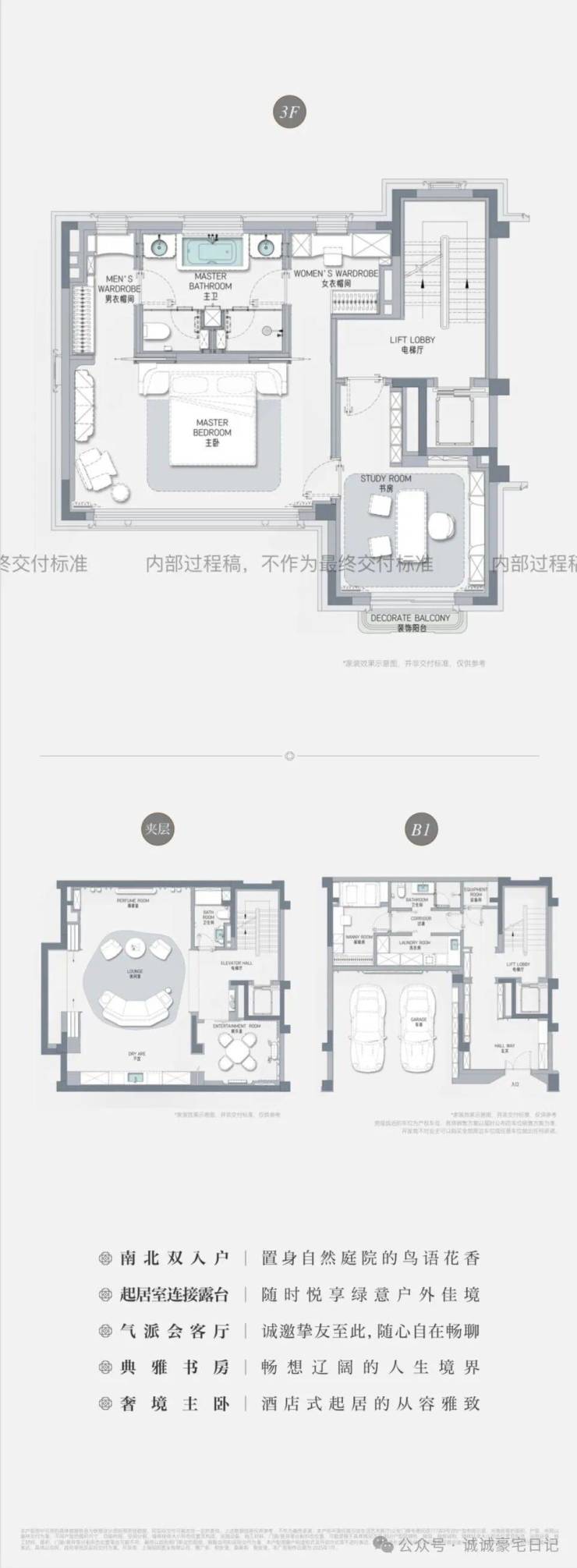 目前市面上大多数风貌别墅受限于指标,普遍采用超高层+别墅的高低配组合,圈层不纯粹,花了买别墅的钱,却享受不到应有的生活质感和圈层价值。