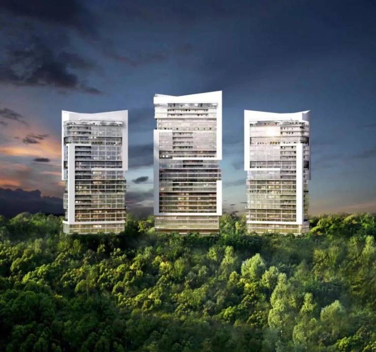 整个社区都是绿色森林,树海环抱, 连底层都挑空6~9米,种植绿色,让每户人家都能“开窗见树”,让房子生长在森林之上。
