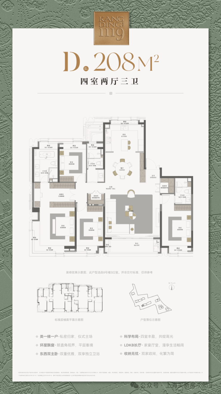 康定壹拾玖三批次加推123-238㎡3-5房在售,均价17.18万/㎡,项目作为静安老城区稀缺产品,在细节及产品力上受到广大上海顶豪客户的喜爱,目前少量房源在售,
