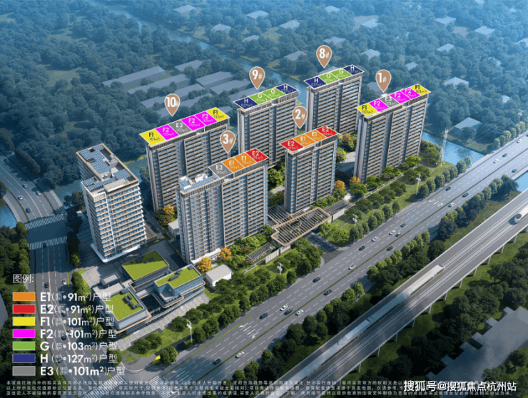 整个社区的北侧与东侧双面环水、西侧是商业,不止有繁华的城市街景,更有滨水风光,光这个社区的占位和天赋,就已经足够出色。