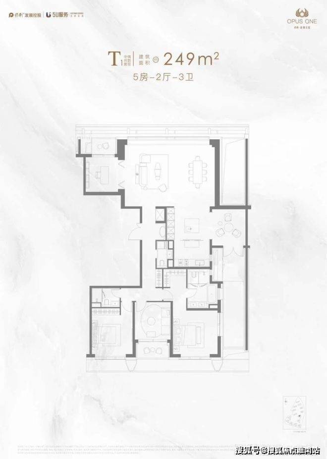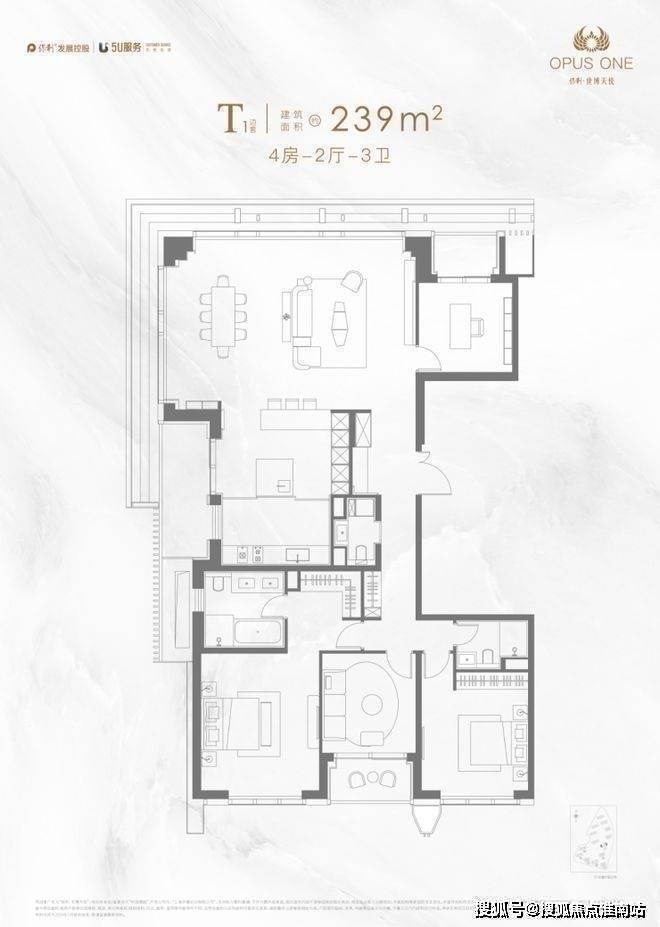 主力户型:190-252㎡(3-5房),层高3.35米,得房率79%.