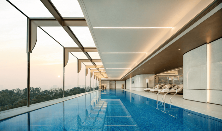 很多人可能不知道,在上海市中心能做到35%绿地率有多难。【大华·静安年华】不仅做到了,还把约2300㎡的配套设施都安排得明明白白——商业3层还精心配备了空中泳池、健身房、瑜伽房、私宴厅,搭配得天独厚的采光和窗外绿意盎然的屋顶花园,运动休闲时抬头就是风景,惬意氛围直接拉满。