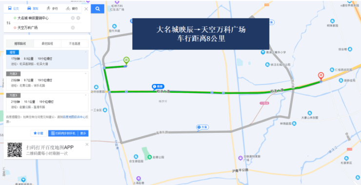 就拿国庆刚开业的天空万科广场来说,从大名城映辰出发,自驾非常便捷。