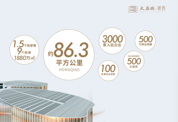 大名城映辰东面是大虹桥核心区,有着超9倍于前滩的开发规模、有超500万方的商业体量,有超3000家企业入驻的产业能级,总部经济也蔚然成势。