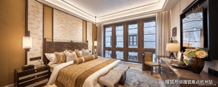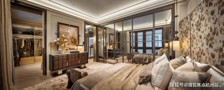 三层:主卧+ 书房组成豪华套房,将近40㎡,一层一户,将主人空间需要的尺度感与私密性拉满,同时外接约 11.35㎡露台,将城市风景与星空纳入日常。