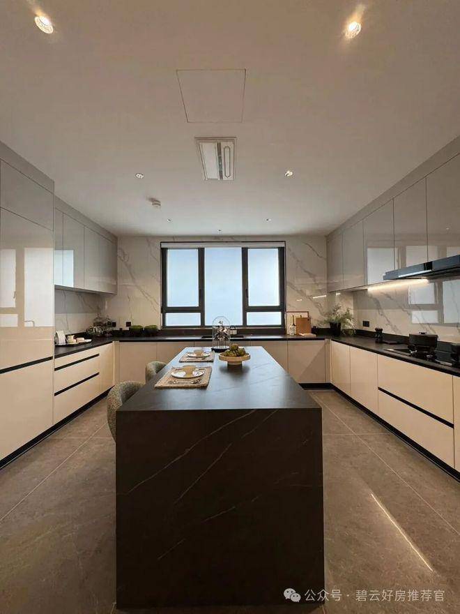 第四,得益于约80%的超高得房率,这个户型在保证超高实用性的同时,还兼顾了极为宽奢的尺度感,尤其是一体化+南北通透的客餐厅+厨房,喜欢开House Party的小伙伴,该客餐厅可完美胜任。