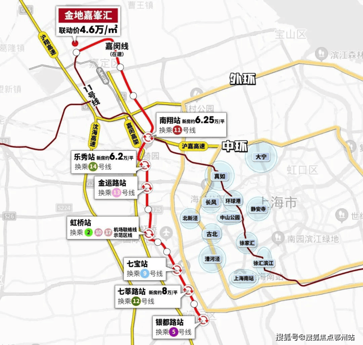 金地嘉峯汇距11号线仅500米,离在建的嘉闵线约200米,8站直通大虹桥,是当下400万级中少见的双轨交盘。