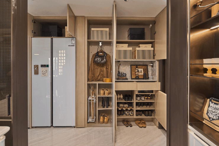大户型入户还采用了铸铝子母门,表面经多道工艺处理,质感厚重而细腻,入户仪式感、尊贵感拉满,更兼顾实用与大气。